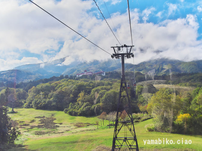 スカイケーフ゛ル山麓駅からの妙高山(雲の中)