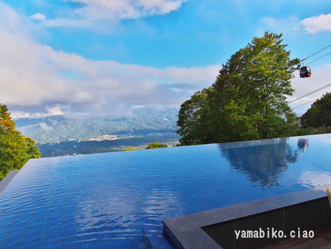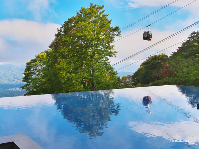 概要 妙高の大自然を望める妙高高原スカイケーブルでは、令和6年(2024)の秋に、新型ゴンドラが導入されました。標高差約570m、約11分間の空中散歩です。大きな窓からは、四季折々に表情を変える周辺の山々や、妙高高原山麓が一望でき、まるで雲上を散歩をしているような気分が味わえます。遠く志賀・野沢の山並みから、斑尾山・野尻湖まで一望できます。山頂駅付近には、絶景を眺めながらくつろげるカフェテラスや休憩所、ブナ原生林があり、トレッキングや散策も楽しめ、妙高山の登山口としても利用されています。山頂駅近くに設置されたテラスには、大きな水盤に妙高山から湧き出る天然水を満たし、青空や雲を鏡のように映し出す、幻想的な空間が楽しめます。開放感あふれるテラス席や、休憩スペースからは、四季折々に移りゆく妙高高原の大自然を、ゆったりと堪能できます。また、山麓駅周辺には豊富な湯量を誇る赤倉温泉があります。 |