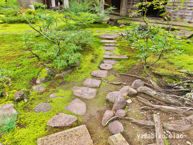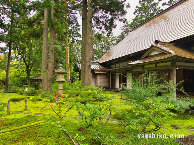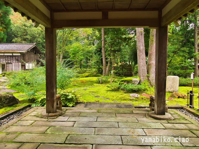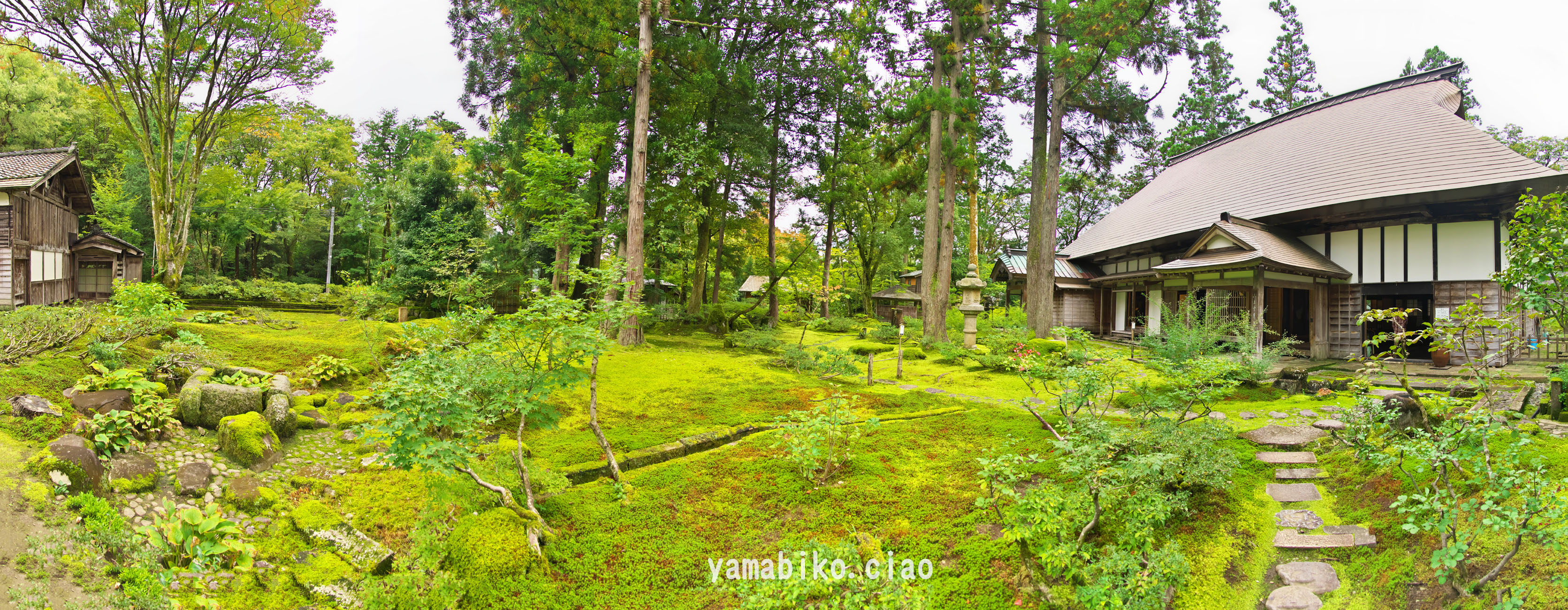 草の玄関前からの貞観堂前庭パノラマ、※写真クリックで拡大