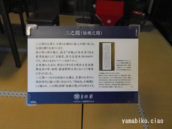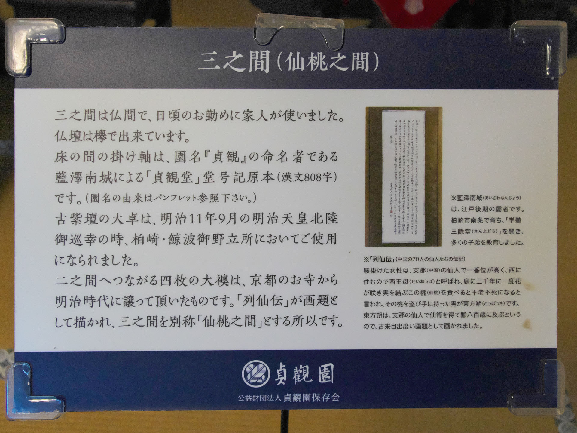 「三之間(仙桃之間)」案内板、※写真クリックで拡大
