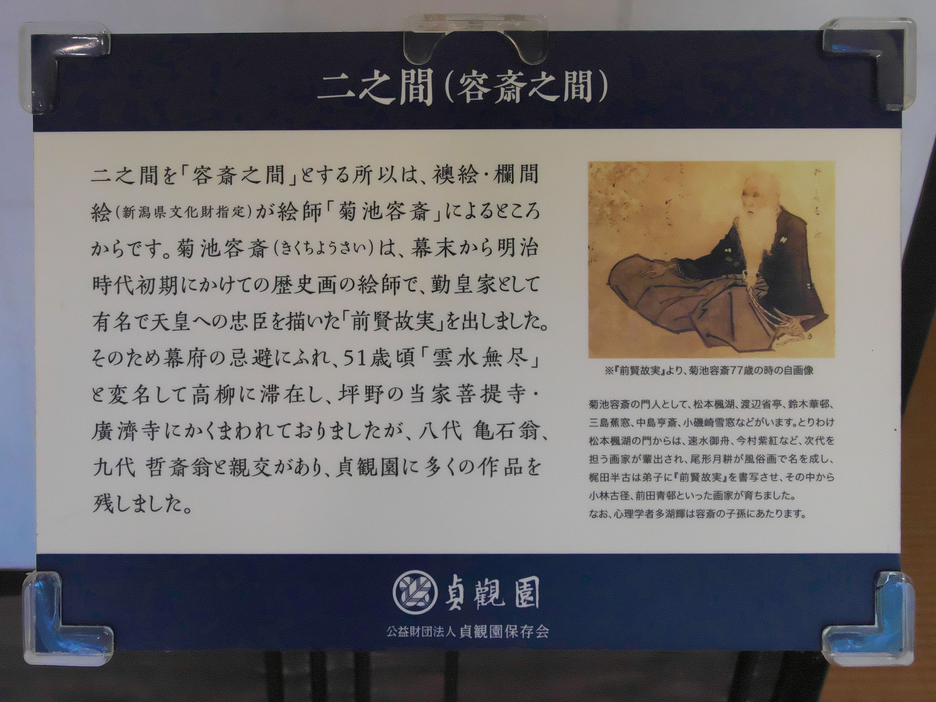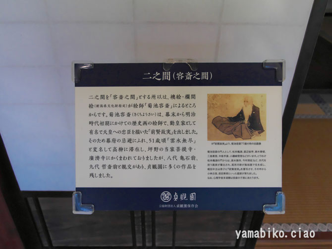 「二之間(客斎之間)」案内板、※写真クリックで拡大