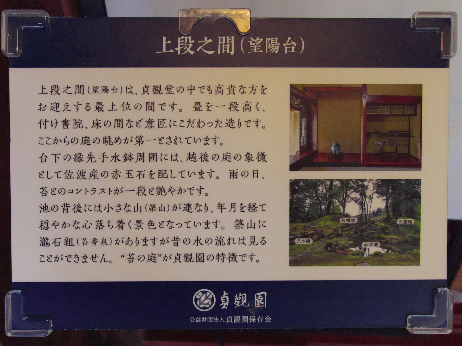 「上段之間(望陽台)」案内板、※写真クリックで拡大