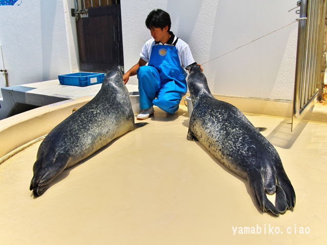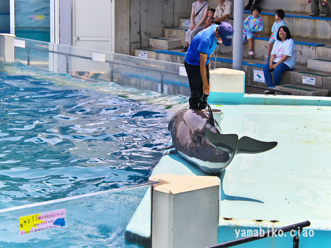 | 地 域 | 18n:三国/北西NW | 概要 越前松島水族館は、昭和34年(1595)開館。景勝地:東尋坊にほど近く、施設全体が越前加賀海岸国定公園の内部にあります。「みて・ふれて・楽しく学べる水族館」をテーマに掲げ、生物と来館者の距離の近さ、生物とのふれあいを重視した展示に特徴があります。大規模な隔壁がなく、非常に近い位置から生物を観察することができます。また、施設の奥は、そのまま日本海に繋がっていて、岩場での磯遊び体験も可能です。イルカショーやペンギンの散歩などの楽しいアトラクションの他、サメや巨大なタコ・ドクターフィッシュなどに触れたり、ウミガメや海の魚に餌を与えることができます。また、水面がガラス張りの珊瑚礁水槽の上を歩けたり、水中トンネルのある「ペンギン館」も好評です。アザラシやカワウソ、マンボウも展示されています。さらに、鯨と恐竜の3D映像が放映され、大迫力で観賞できます。観覧車が少ない平日がお薦めです。 | |