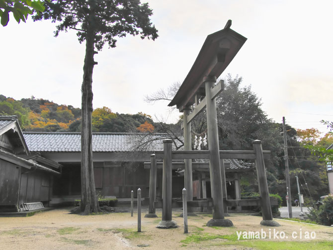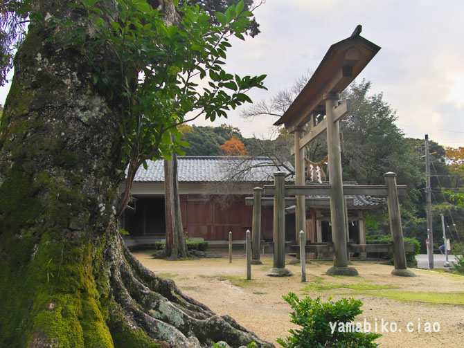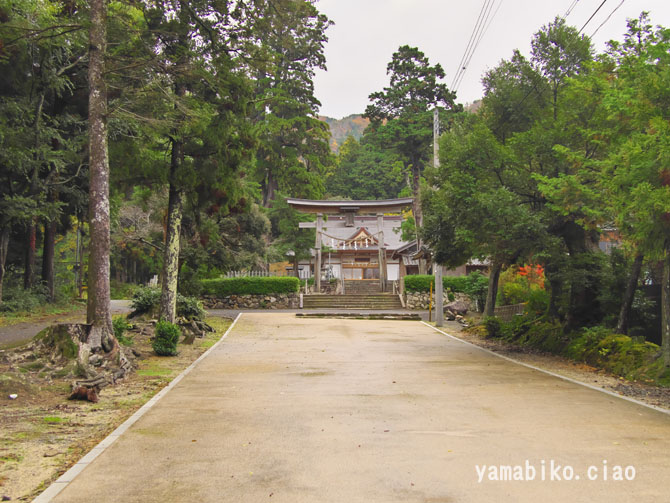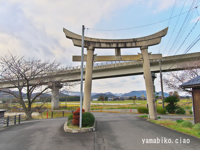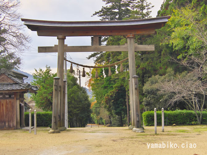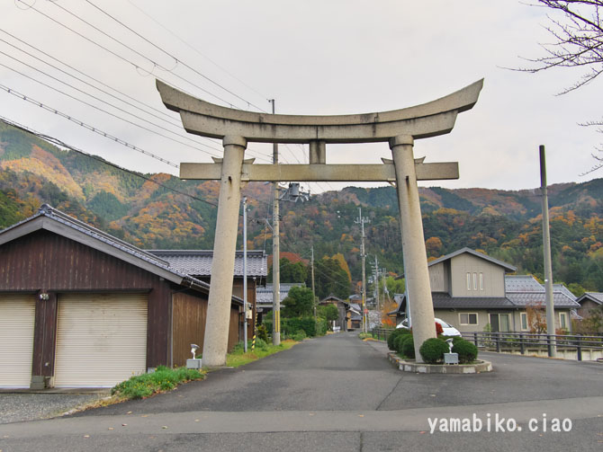 一の鳥居背面、※ここから先の約0.5km村はずれに社号碑が立っています
