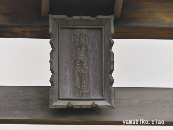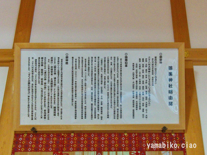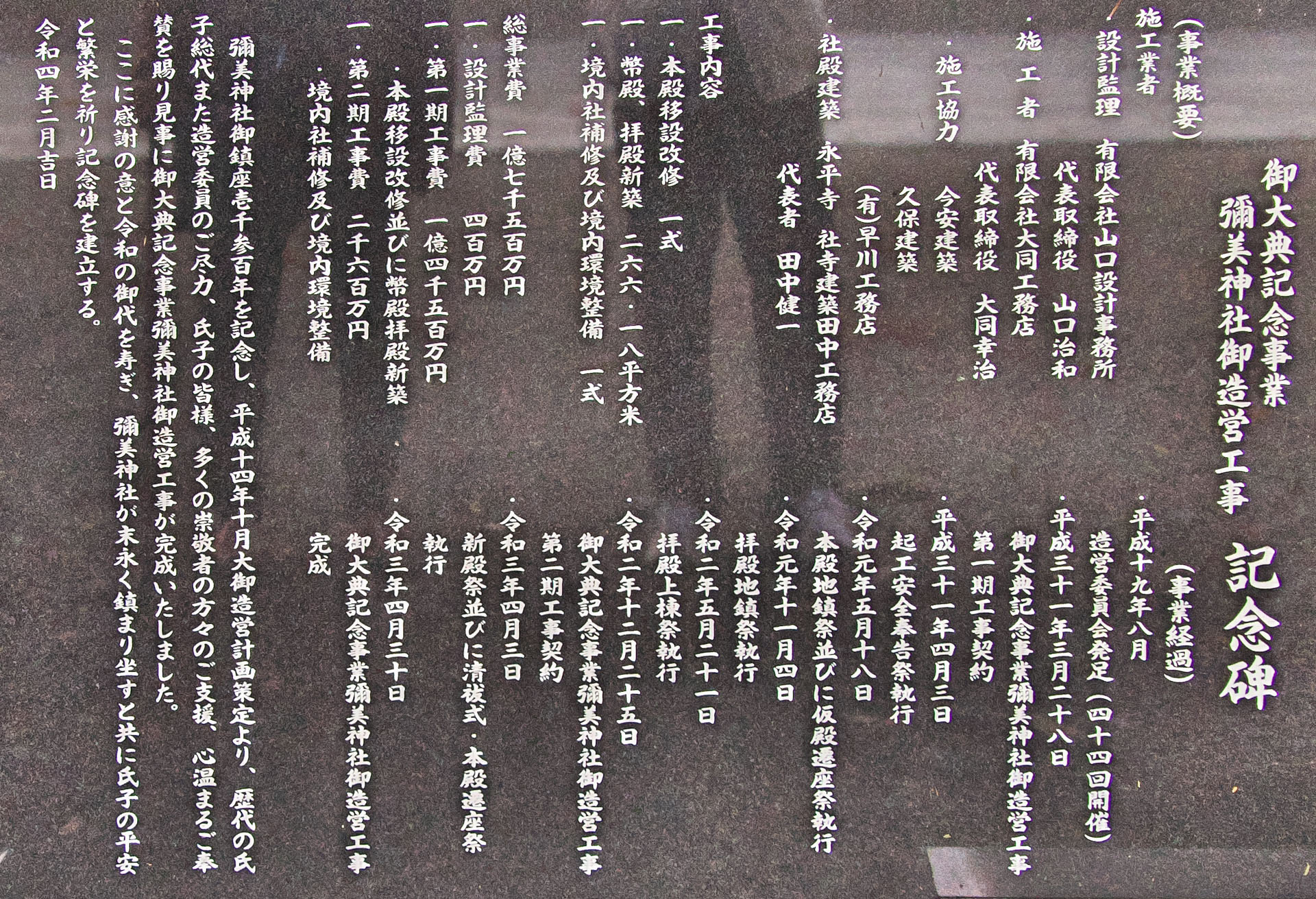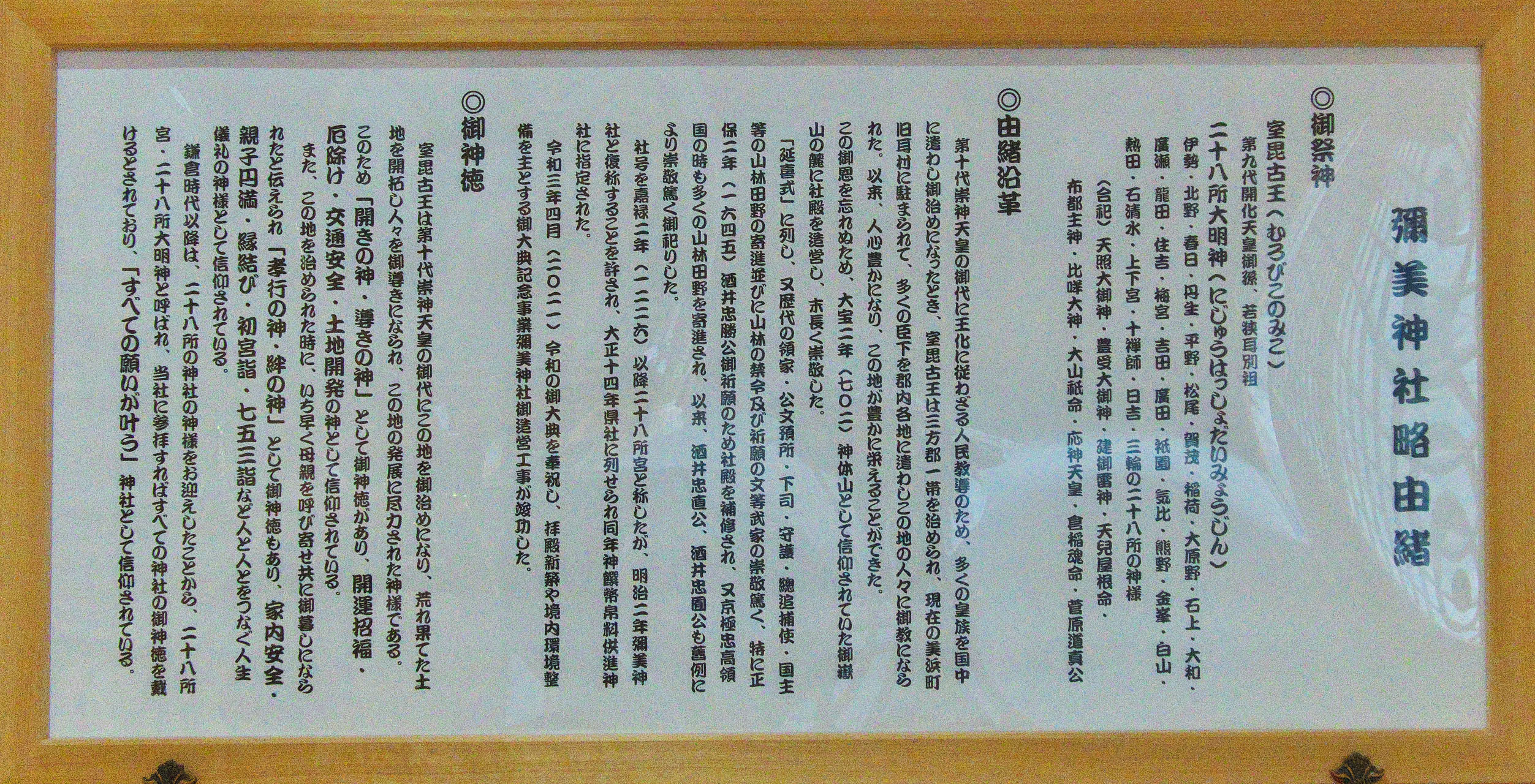 「彌美神社略由緒」案内額、※写真クリックで拡大
