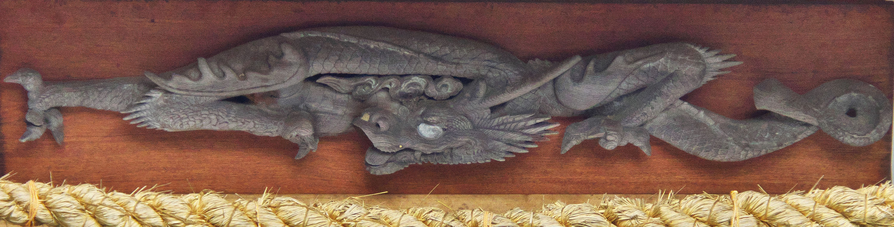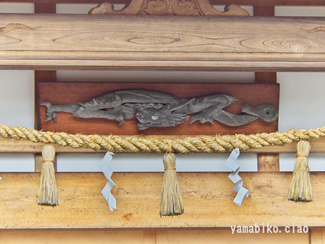 拝殿向拝に龍の彫刻額、※写真クリックで拡大