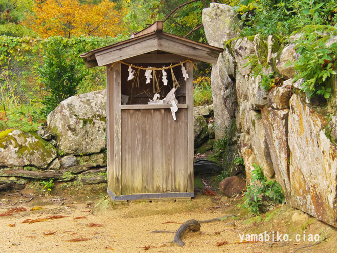 園林寺は、彌美神社の隣接地に立ち、神宮寺の関係にあります。嘉禄2年(1226)に彌美神社が再興されて、園林寺の下に入り、守護者的性格を与えられるようになったとされ、荘園制の進行によって園林寺勢力下から二十八所宮として再興という形になったのだといわれます。元々の彌美信仰である民俗信仰は、これにより押しやられ地主神となっていったのだとされます。ただ荘園領主は、延暦寺常寿院で天台宗。園林寺の真言宗とは違います。それでも彌美神が地域の自然神としていたために、荘園鎮守社として受け入れたのだといわれます。