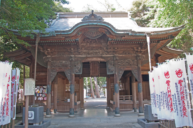 | 概 要 | 曹洞宗の寺院。詳しくは「円福山 豊川閣 妙厳寺」(えんぷくざん とよかわかく みょうごんじ)と称する寺院です。本尊は千手観音。嘉吉元年(1441)、曹洞宗法王派の東海義易によって創建。室町時代末期、今川義元が伽藍を整備。当時は、豊川(河川名)の近くに広がる円福ヶ丘という高台に伽藍があったが、元禄年間までに現在地に移転。現存する諸堂は江戸時代末期から近代の再建です。境内にある稲荷堂が有名なため、一般には「豊川稲荷」の名で広く知られる。 この門は、景雲門といわれ、安政五年(1858)の建築で旧奥ノ院の拝殿であったが、昭和五年大本殿の落慶にあたり、ここに移築して奥ノ院参詣の門となりました。 |