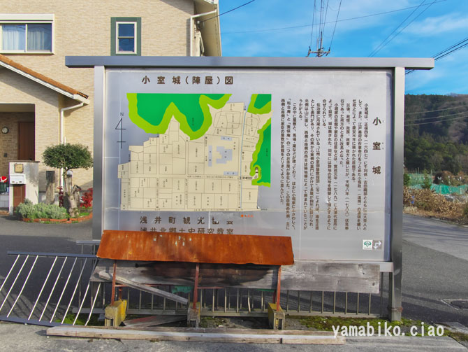 「小室城」案内板、※写真クリックで「小室城(陣屋)図」拡大