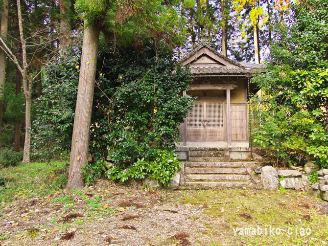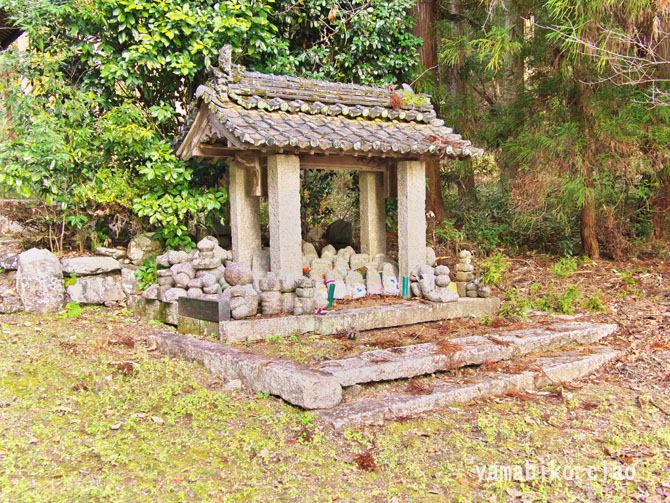 ※木造上屋の2本の柱を切断し、4本の石柱で支えています、柱の腐朽対策なのでしょうか