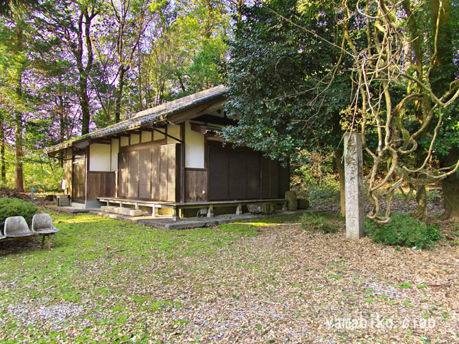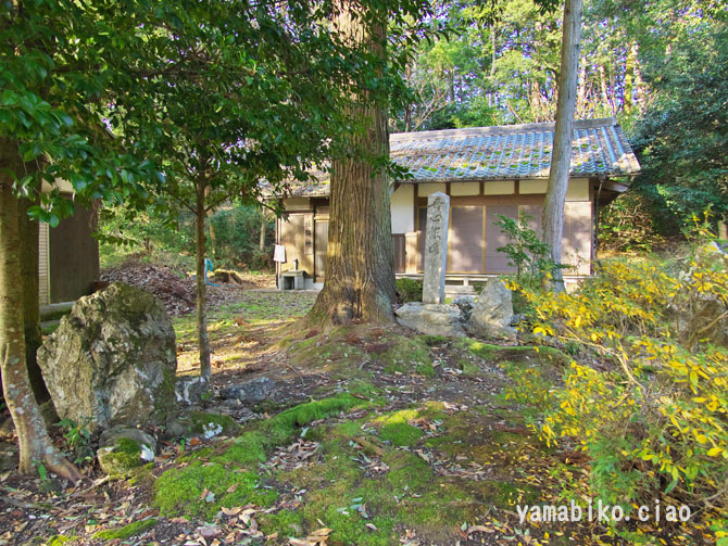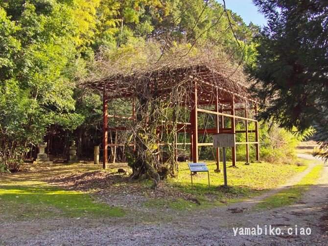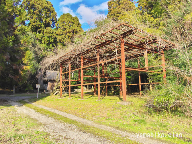 参道口・鳥居、側道:近江孤蓬庵への道路、道路の突き当りに藤棚があります