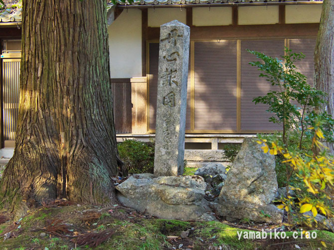 「丹心詠國」の石碑、奥は社務所