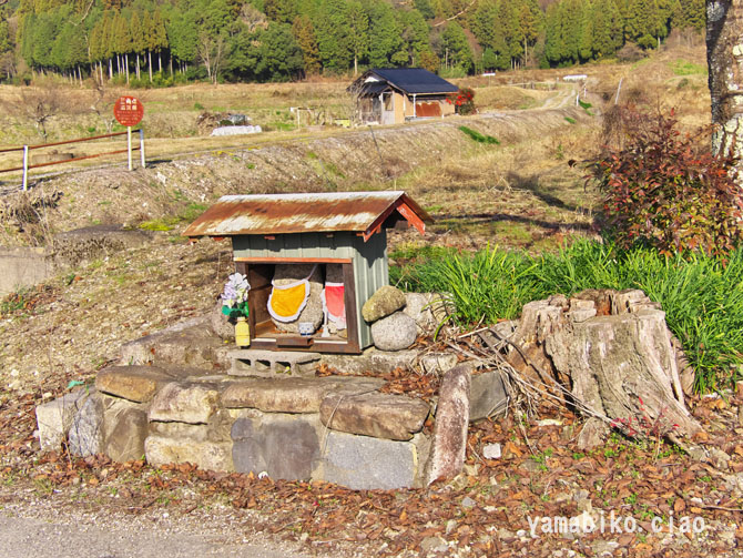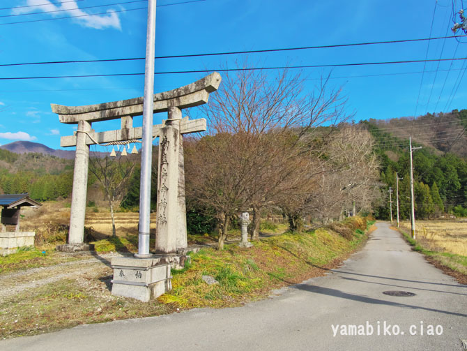小室地区郊外から神社参道口を眺めます、※道路の突き当り