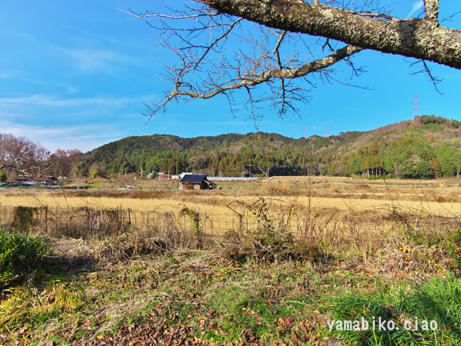 参道口から小室城址を眺めます