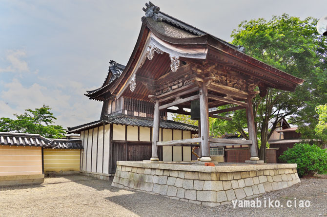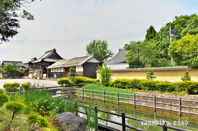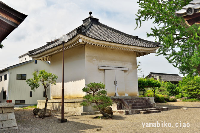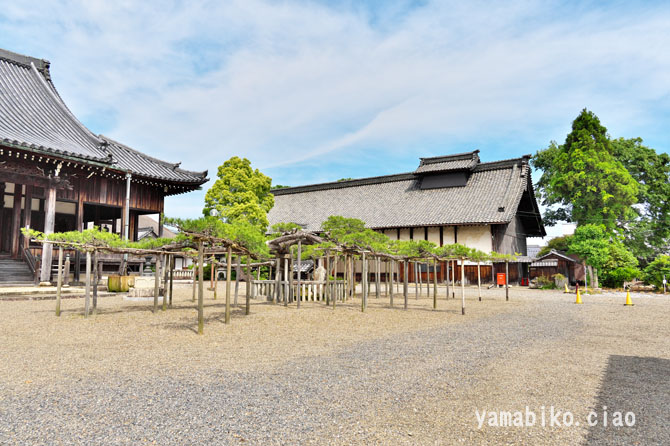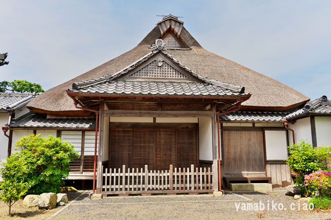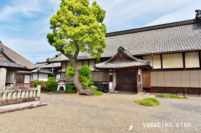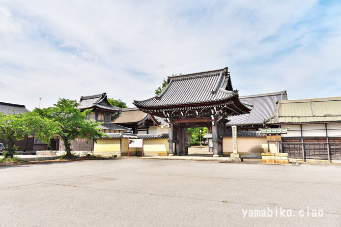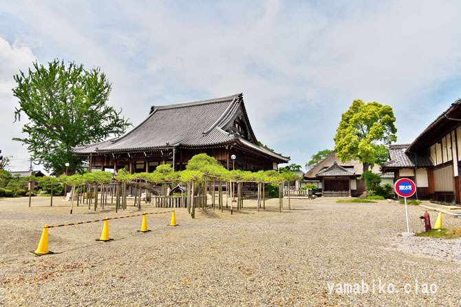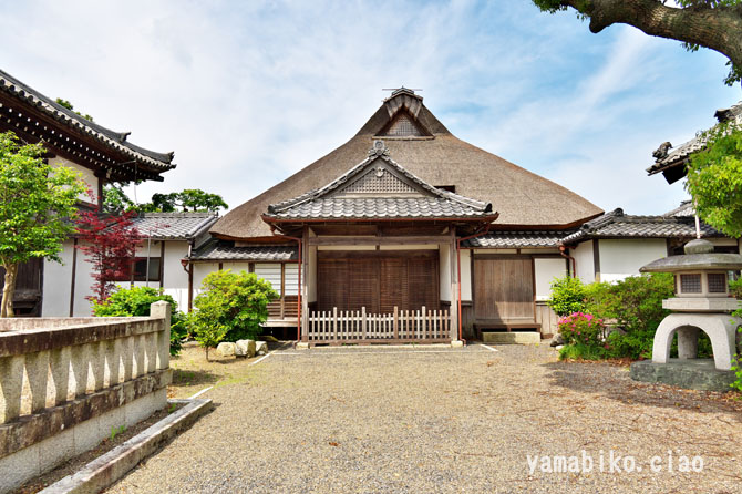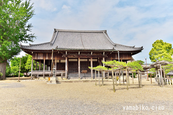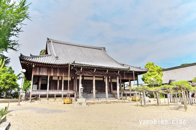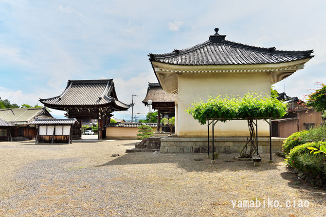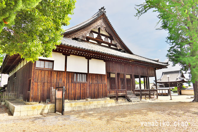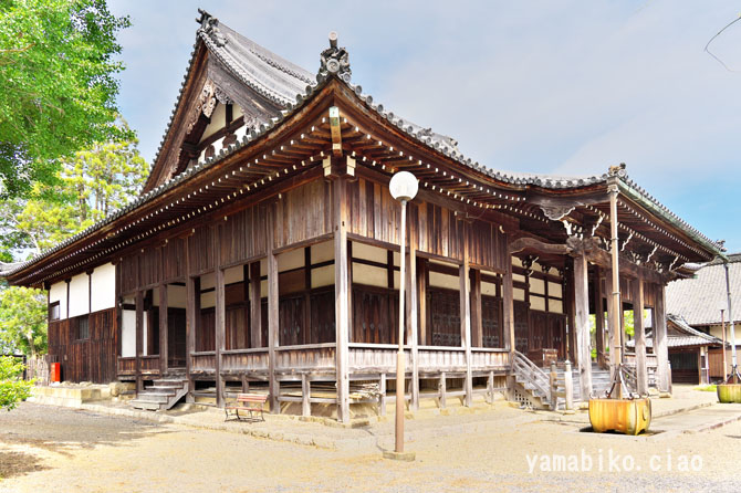 本堂左側面、右奥に山門