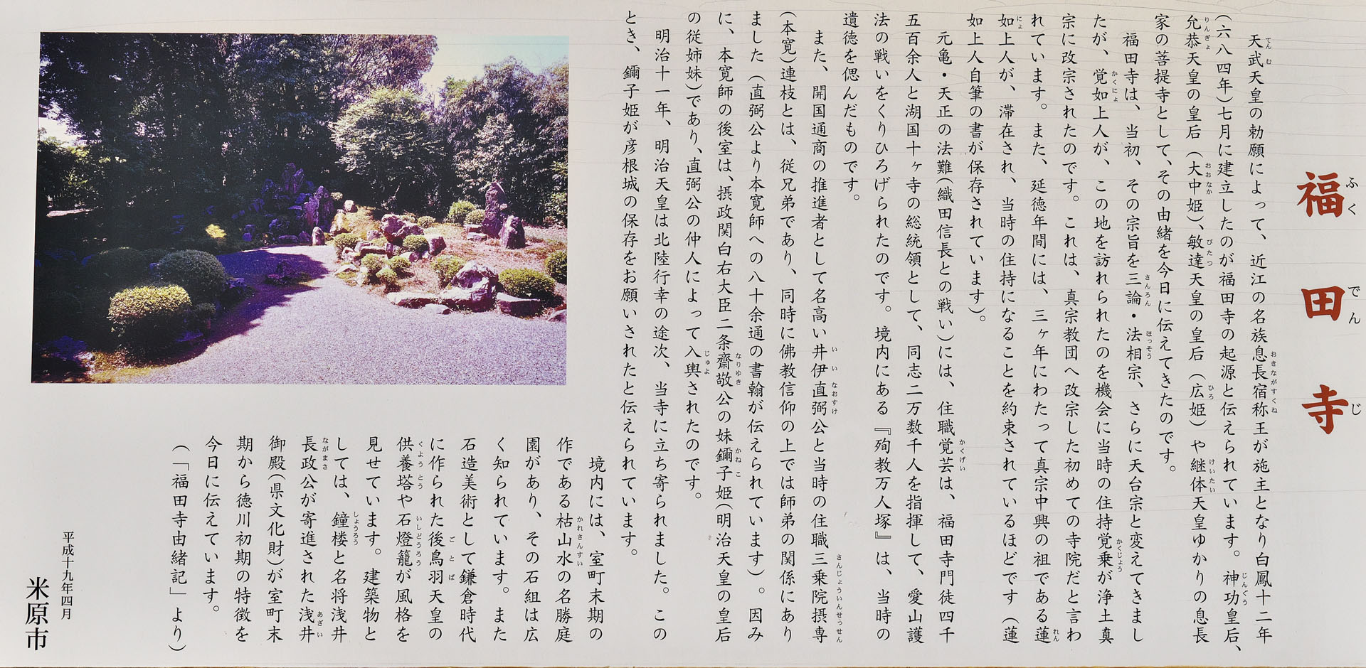 「福田寺」案内板、※写真クリックで拡大