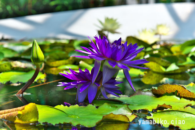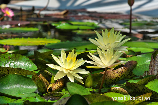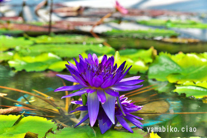 | 地 域 | 25s:草津/北西SE | 概要 草津市立水生植物公園みずの森は、「植物と人、水と人のふれあい」をテーマに、平成8年(1996)に開園しました。総面積は約3.7ha(甲子園球場の総面積とほぼ同じ)です。約13haにも及ぶ日本有数のハスの群生地(現在は消滅し水面と化しています)のほど近くに建設されたことから、「ロータス館」を中心にハスやスイレンなどの水生植物の展示に重きを置いています。特にスイレンは、150種類以上を展示されており、日本最多を誇ります。またロータス館には、水生植物のほかに「沙羅双樹」として仏教で重要な意味を持つ熱帯植物のサラノキを植栽されています。そのほかにも、散策路を通じて、四季折々にさまざまな植物と触れ合うことができます。烏丸半島のハスの群生地が、平成28年(2016)に消滅したことを受け、園内の池に、群生地の景観を再現しようとするものです。 | |