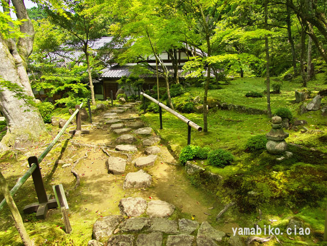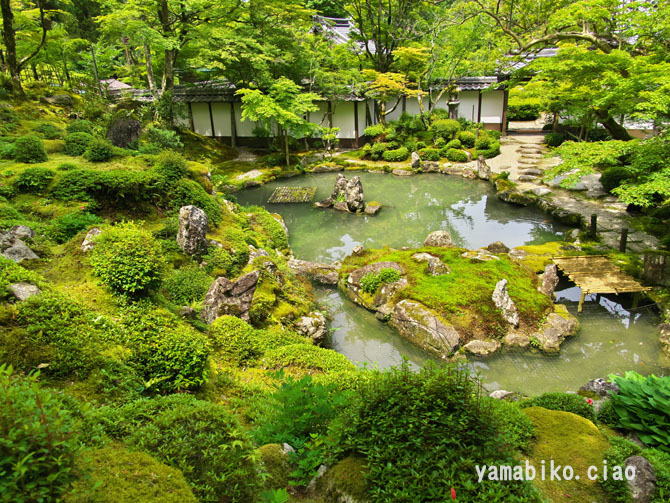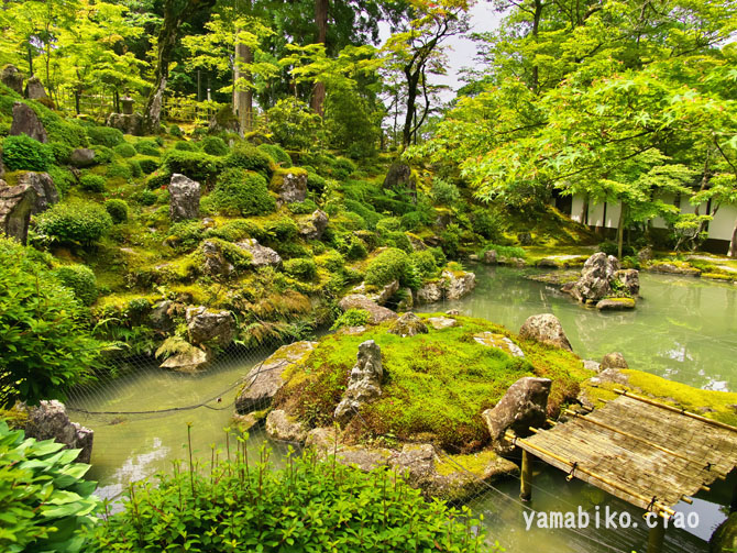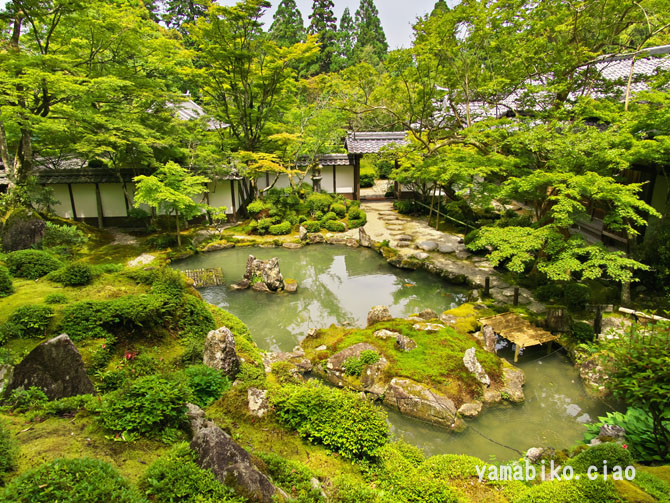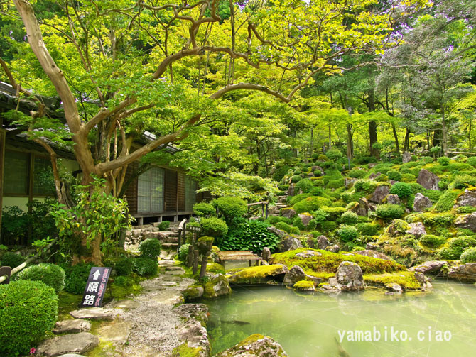 概要 西明寺は、鈴鹿山脈の西山腹に位置する寺院で、湖東三山(西明寺、金剛輪寺、百済寺)の名でも知られ、紅葉の名所です。本坊にある庭園は、国の名勝に指定され、『蓬莱庭』とよばれています。江戸時代の延宝元年(1673)、寺院の復興にあたっていた望月友閑が、復興の記念にと造った庭園で、小堀遠州の作庭を参考にした造りといわれています。紅葉時期はもちろんの事、苔清水(雨に濡れた苔)の風情も見所です。 |