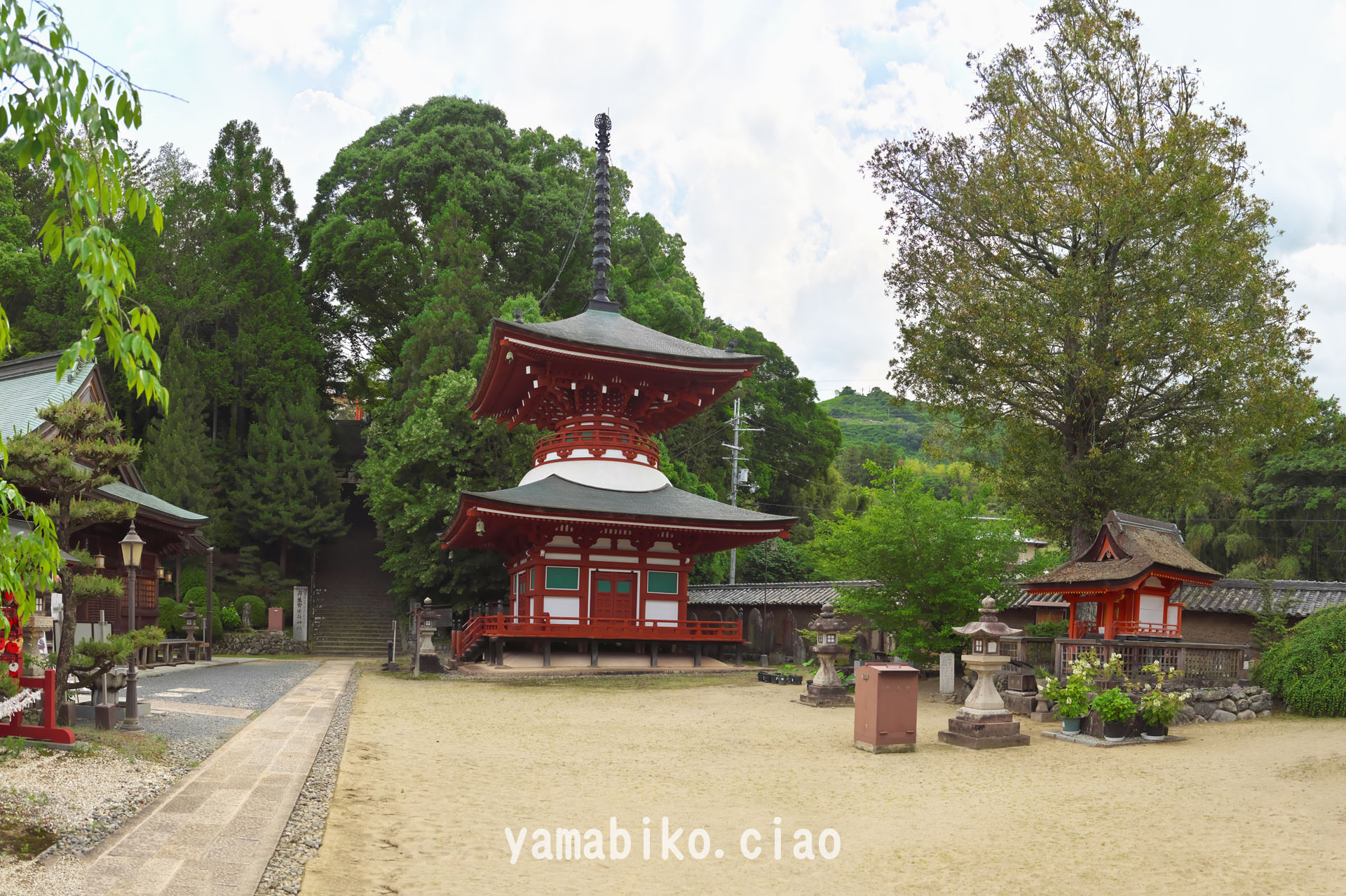 女人高野で知られる慈尊院、多宝塔とナギの古木が背比べです(2025.05.28、和歌山県九度山町)