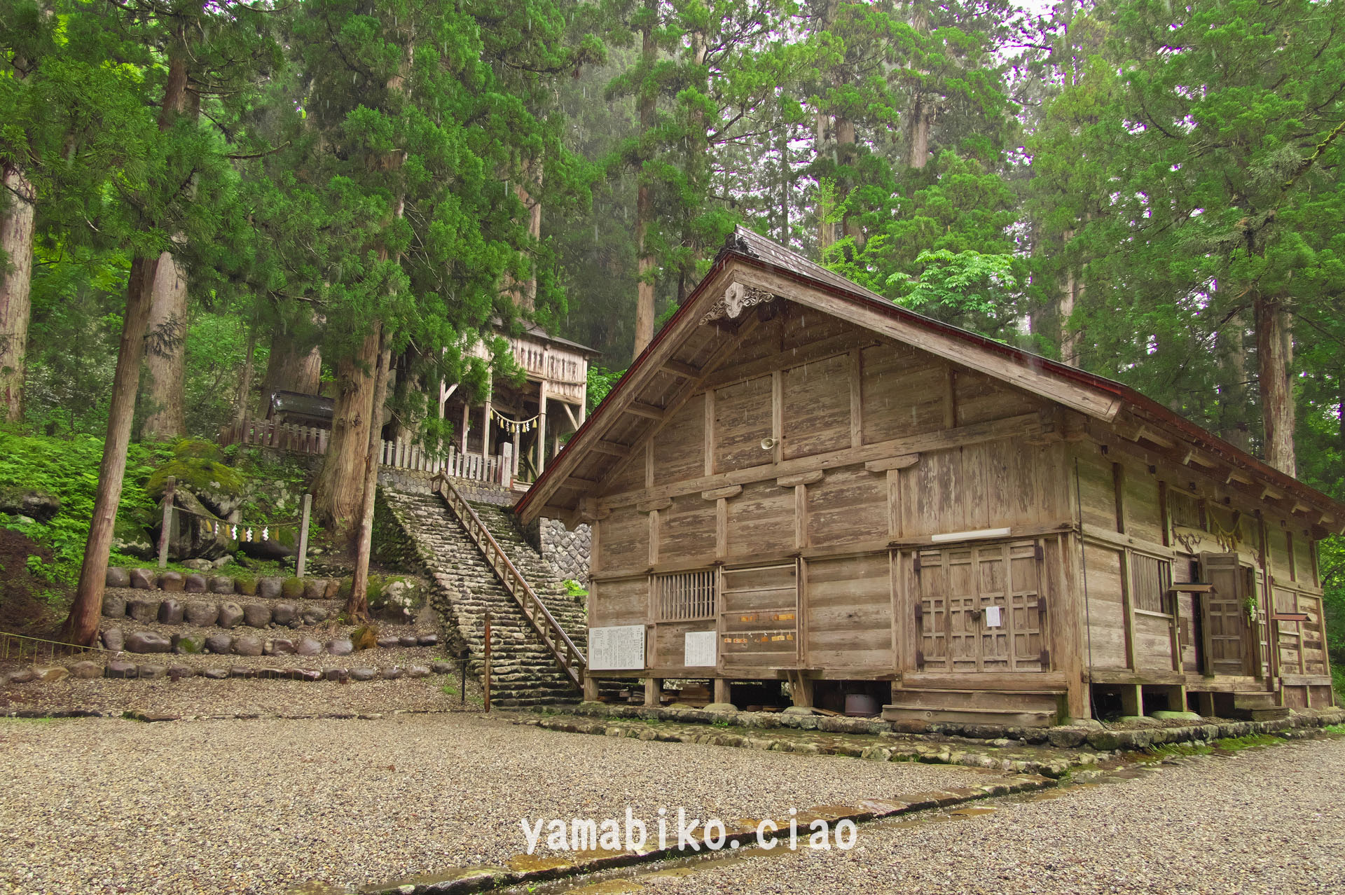 樹齢300-1000年、杉の大木に囲まれた白山信仰に関わる神社です(2025.06.03、岐阜県県白鳥町)