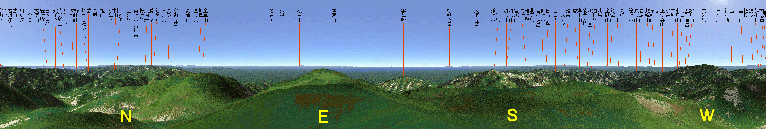 カシミール3D | 金山山頂 から 釈迦ヶ岳 御池岳 |
