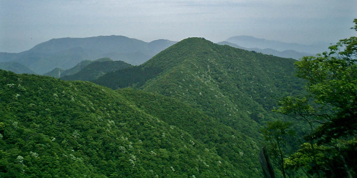 右はるか彼方に伊吹山、焼尾山からの眺望 (滋賀県多賀町にて)