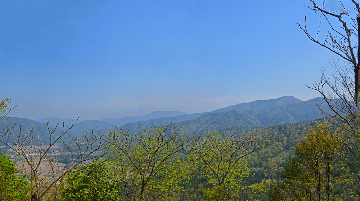 滋賀湖北南部にある山田山の雨森三角点の樹間からの北側展望です。横山岳が望見できます。山田山は、小谷攻めの攻防で小谷城陥落のきっかけとなった所の一つ。 2