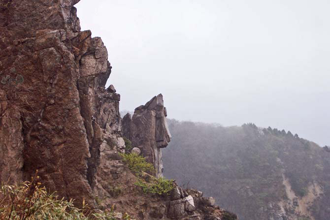 | 概 要 | 赤坂山(標高:823.8m)は、野坂山地北部にあり、福井/滋賀県境に位置する三角点を有する山容の美しい山です。花の数や種類が多いことから、多くの人を迎えています。4月の下旬にはカタクリが咲き、僅かながら、残雪も見受けられます。頂上付近は、明王の禿と称されるガレ場で、奇岩が林立し、別の星に来たような錯覚さえ覚えます。登山コースは、雑木林が多く、初夏の新緑、秋の紅葉と、楽しみは多いところです。 赤坂山の頂上付近はガレ場で、奇岩が林立しライオンの姿のようなものまであります。まるでスフィンクスのように、登山者の安全を守っているようにも、マナーの悪い登山者には「おしおきを与えるぞ〜」と、言っているようにも・・・・ そこで一言、『 獅子の顔 刻みし岩に 春の風 』 |