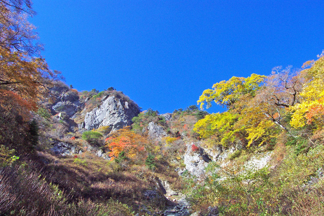 | 概 要 | 石鎚山は、標高において西日本最高の山です。古くから、山岳信仰で開かれ、登山と言うよりお詣りと表現されるように、多くの善男善女が山頂を目指します。登山道は、一部に険しい所があり、鎖がたらされている所もありますが、エスケープルートも用意されていますので、安心して山頂に至ることができます。山頂:弥山は、展望がよく四国の最高峰にふさわしいパノラマが展開しています。最高部は天狗岳と称され、天狗の鼻のように天をつくような急峻な山稜で、登山者を魅了いたします。 10月になると、峰々は紅葉で色づきはじめます。山から谷に駆け降りるように秋色に染めてゆきます。正に錦秋の世界です。 そこで一言、『 掛け下る 山から谷へ 秋葉色 』 |