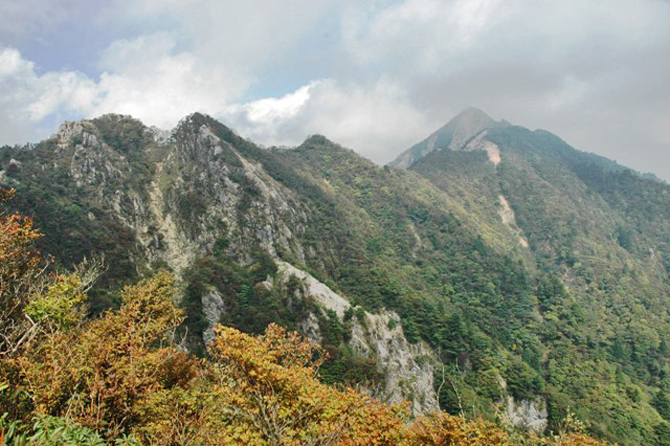 | 概 要 | 南鈴鹿に位置する鎌ヶ岳と宮越山(水沢岳)の2km間に連なる尾根は、鎌尾根と称されます。標高1000m内外の峰が7峰(数え方による)あり、それぞれに奇岩やザレ場、笹の尾根道などバラエティーに富んだ表情で登山者の通行を待ち受けています。山麓から眺めると、鋸の歯のように見えなくもありません。実際の尾根道に立つと、やせ尾根でありながら、笹が手摺のように登山者を保護しています。鎖場などもあり、体力度においても難易度においても、通常の尾根縦走とは、一味も二味も違います。 尾根をひとつ越えるたびに、鎌ヶ岳の表情が変わってゆきます。爽やかな風がススキの穂を揺らしています。そんな長閑な状況ですが、足元は断崖やザレ場の不安定な尾根道です。 そこで一言、『 幾つ峰 変化(へんげ)す尾根に 尾花揺れ 』 |