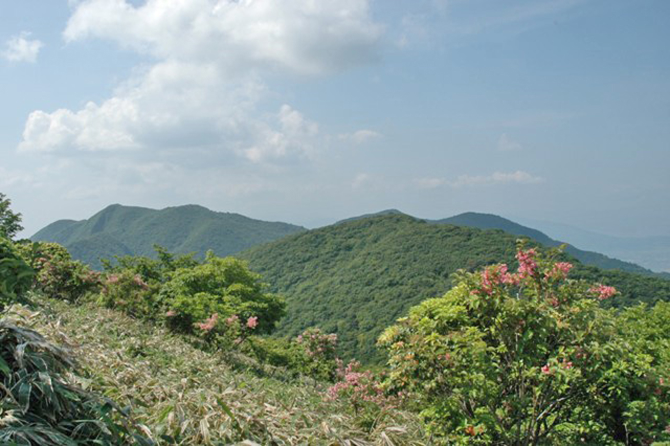 | 概 要 | 養老山地は、濃尾平野の西端にある山地で、岐阜県と三重県にまたがり、鈴鹿山脈の東に平行してあります。笙ヶ岳はその最高峰で、三角点のある西峰と東峰とからなる双耳峰で、北側に展望が開け伊吹山などが望めます。みじ峠から起伏に富んだ尾根縦走、笹原峠を過ぎると展望が良くなり、小倉山では爽快な気分で雄大な眺望を楽しめます。山頂部は、周遊ができ時間を忘れてしまいます、眺望を堪能したら養老山に向かいます。こちらは展望はありません。展望のない尾根道を、歩き疲れた頃尾根道が開き現れ出た展望が笙ヶ岳です。 登山道のあちこちに、ピンク色のタニウツギが群生し、尾根を手前にして咲く姿を通して眺める笙ヶ岳は、華麗で、疲れを一気に吹き飛ばします。 そこで一言、『 尾根遙か 重なる峰に 谷空木(タニウツギ) 』 |