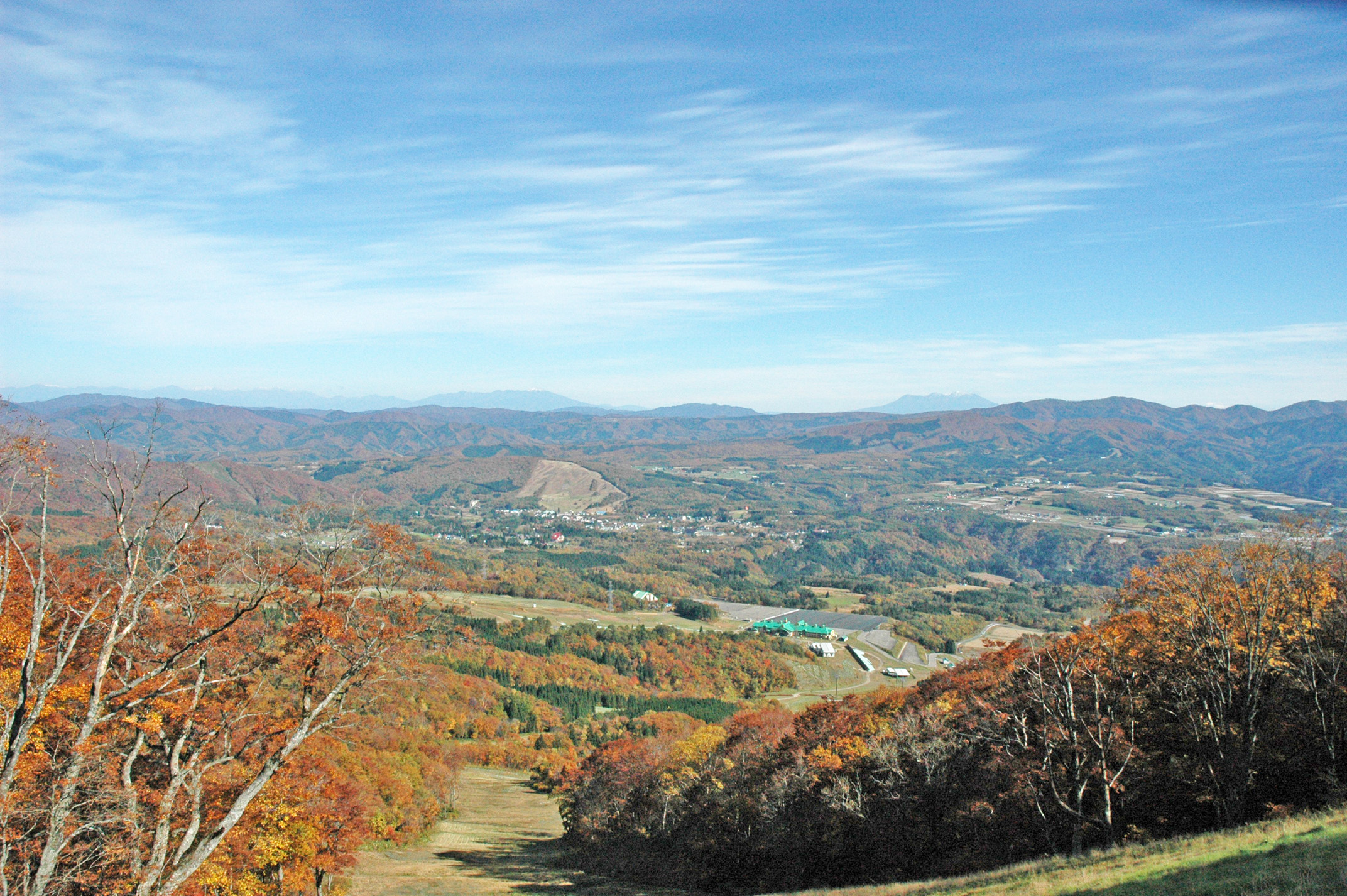 | 概 要 | 大日ヶ岳の東斜面に広がるスキー場のゲレンデからの展望は、御嶽山・後倉岳・槍/穂高連峰などが一望できます。日本屈指の3000m級の山々が奥美濃の200m級の山々から頭一つ飛び出してその雄姿を誇示しています。 冠雪を抱いた峰々が見える時、大日ヶ岳の山腹は紅葉で彩られます。山頂から山麓に降りてくると冬将軍の到来です。片側には霊峰白山が聳えており、積雪時だけ人が近づくのを拒みます。 そこで一言、『 染めし木々 頭飛び出す 祈り峰 』 |
