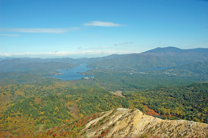 | 概 要 | 磐梯山は猪苗代湖の北方にあり、日本百名山に選定されています。明治21年(1888年)に大噴火で山の姿を大きく変え、女性的ななだらかな表情の表磐梯と、噴火による険峻な荒々しい男性的な表情の裏磐梯がつくられました。噴火によってできた火口壁や火口原はお花畑となり、火口湖は色々な色彩で神秘的な表情を見せます。 秋たけなわ、五色に輝く沼は黄金樹海の海に包まれています。 そこで一言、『 沼五色 黄金樹海の 裏磐梯 』 |