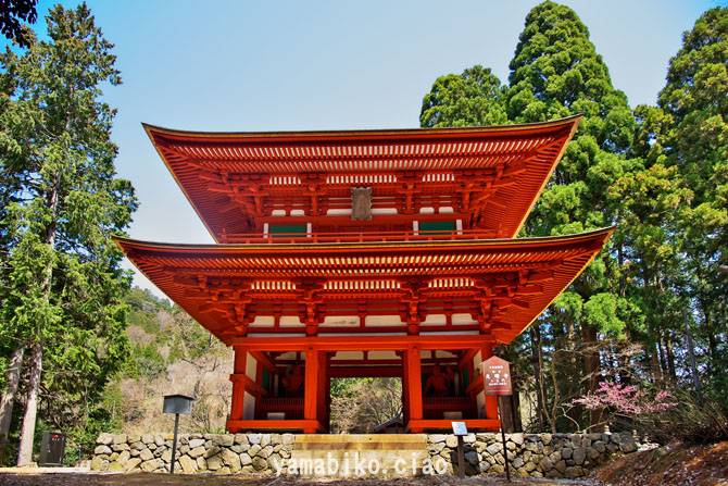 | 概 要 | 光明寺は、宗派:真言宗醍醐派、山号:君尾山、本尊:千手観音、開基:伝聖徳太子。推古天皇7年(599)、聖徳太子による開創と伝わります。その後白鳳元年(673)、役小角が修験道の道場とし、延喜年間(10世紀初)、醍醐寺開祖の聖宝(理源大師)により真言密教の道場として中興されたといわれます。最盛期には、山上山下に72坊を有したといわれます。現存する二王門(国宝、栩葺(とちぶき、の二重門)は、仁治3年(1243)から建長5年(1253)にかけて建立されたものです。 水温み、春の光がさす山道に、こつ然と現れた二重門。修行僧たちは、街の喧騒を避け、世俗を断つために山中深くに修行の場を求めました。うっそうと茂る木立の中に建設された寺院は、周囲の木々が間伐整備され、朱色にまとった山門が輝きを増し、栄華を誇った往時を蘇らせています。 ※『丹塗り』は赤色に塗ること。社寺の仏閣や鳥居などを赤く塗ることをさします。魔除けや真正さを表すだけでなく、木材の腐食や虫害を防ぐ役割も担います。 そこで一言、『 春の陽に 朱に輝く 山の門 』 |