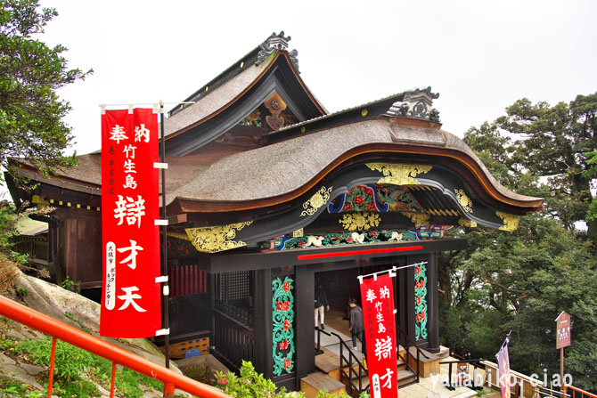 | 概 要 | 宝厳寺は、宗派:真言豊山派、本尊:大弁才天、創建:伝・神亀元年(724)、開山:行基、開基:伝・聖武天皇(勅願)。当初は寺名を本業寺と呼ばれ、東大寺の支配下でしたが、平安時代前期に天台寺院となりました。境内の隣にあった都久夫須麻神社は、神仏習合が進んで宝厳寺と一体化していき、以降、寺と神社の区別はなくなっていき、寺名と社名も合わさって竹生島大神宮寺や竹生島権現などと名乗り、観音と弁才天信仰の島として栄え、後には宝厳寺とも呼ばれました。 琵琶湖北湖に浮かぶ竹生島。中秋の琵琶湖の風は心なしか寒くも感じます。宝厳寺には、安土桃山時代に栄華を誇った豊臣家が整備した京都豊国廟(秀吉の亡がらを葬った廟所)から、移築する形で竹生島の伽藍整備が行われ、この時の極楽門が移築され、現在の宝厳寺唐門になったといわれます。往時を偲びつつ、秋の風と共に、唐門の門を潜ります。 そこで一言、『 秋の風 栄華の時の 門に入る 』 |