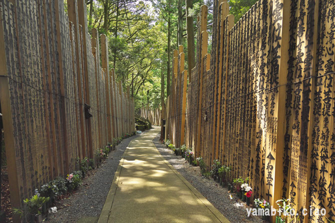 | 概 要 | 金剛證寺は、正式名称:朝熊岳勝峰山兜率院金剛證寺(あさまだけ しょうほうざん とそついん こんごうしょうじ)。創建は6世紀半ばと伝わります。「伊勢神宮の鬼門を守る寺」として、伊勢信仰と結びつき繁栄しました。山門から、参道を通って本堂(摩尼殿)にお参りして奥の院へ向います。奥の院は、勝峰山呑海院(しょうほうざんどんかいいん)と呼ばれます。伊勢では、宗教・宗派に関係なく、一周忌をめどに金剛證寺奥之院に塔婆を建てます。 奥の院への参道には、ずらっと塔婆が並び、大きい塔婆は7.8mもあります。うっそうとした参道に壁のように立ち並ぶ卒塔婆です。 若葉が成長して深緑になり、青々と茂る頃(深青葉)、祈り道には木漏れ日が、祈りの場へと導いてくれます。 そこで一言、『 深青葉(ふかあおば) 塔婆の壁や 祈り道 』 |