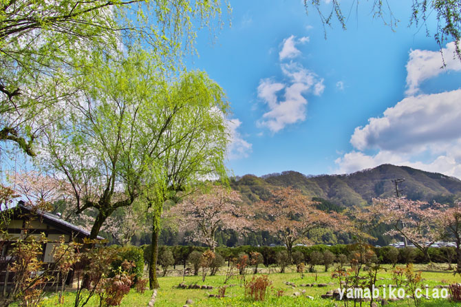 | 概 要 | 万葉の里・味真野苑は、継体天皇ゆかりの地・味真野地区にあり、新元号「令和」で注目された『万葉集』とも深い関わりがあります。今から1200年余り前、平城宮では貴族を中心に壮大で華麗な天平文化が栄えました。越前・味真野は、平城の都から味真野の地に流された中臣宅守(なかとみのやかもり)と、都で宅守を思う狭野弟上娘子(さののおとがみのおとめ)の、悲しい恋の歌の舞台として知られています。二人の間で詠まれた情熱的な歌は万葉集に63首も残されています。 時がゆっくりと流れる感じがする雰囲気の万葉の里。万葉の歌碑が設けられ、四季折々に咲く花や植物を観賞できる所です。春の長閑な一日、敷地内に佇み、山里の風景や山並み、流れる雲を見つ、非日常の世界を堪能します。 そこで一言、『 春長閑(のどか) 万葉の里 雲ながる 』 |
