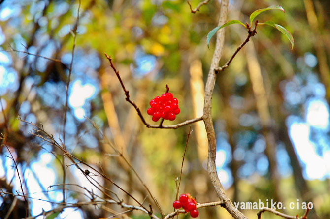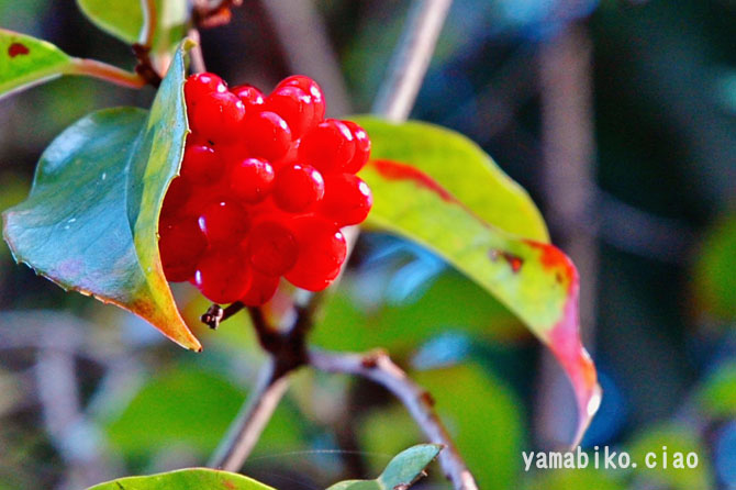ほどになります。和菓子の、鹿の子餅を思わせる果実は、初冬の林縁でよく目立ちます。