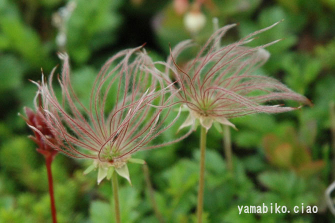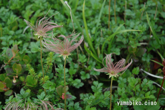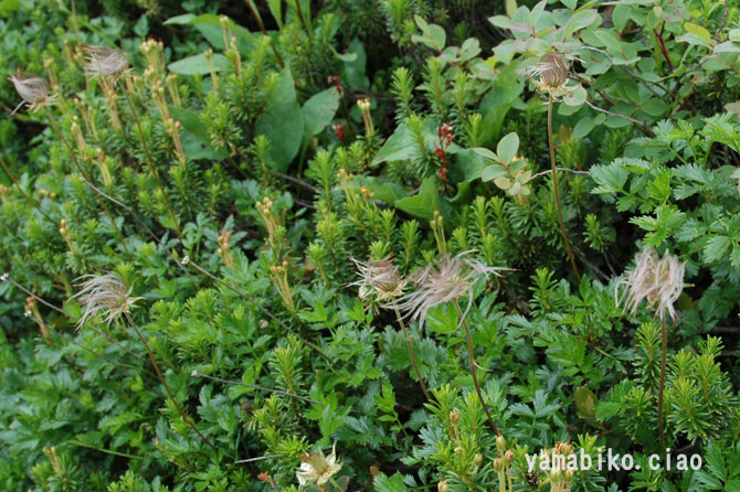 北海道から中部地方以北に分布し、高山の草地や湿地に生育する落葉小低木の高山植物。枝は地面を這い、群落を作ります。花の時期は雪解け前に白い花を咲かせ、可憐で清楚な姿を見せます。まさに鉱山を彩る代表的な花です。花が終わると綿毛に姿を変え、風にそよぐ姿は風情があります。山を歩く人の目を引きます。秋には羽賀赤く色づき、山肌を鮮やかに彩ります。花から綿毛、そして紅葉まで、「サント゛楽しませてくれる植物」として人気があります。